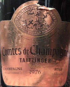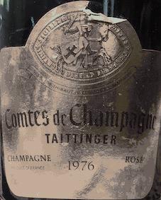 Robe rosée un peu fanée et trouble et tirant vers l'orange en mai 2017 pour ce Champagne cuvée "Comtes de Champagne rosé" millésime 1976 de Taittinger. Plus de bulles malheureusement, signe d'un bouchon qui n'a pas gardé l'étanchéité voulue, mais de l'effervescence en bouche. Le nez n'est pas désagréable sur des notes douces de fruits confits, de figue, de café, évolué. La bouche offre une texture douce, riche, suave mais l'absence de bulles confère un déséquilibre à ce rosé intense aux saveurs confites. A revoir avec de la bulle.