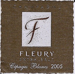 Robe or jaune, soutenue, et mousse très fine en novembre 2017 pour ce Champagne bio "Cépages Blancs" millésime 2005 de la maison Fleury. Comme son nom l'indique elle est élaborée à base des cépages blancs de la Champagne. Ceci dit il semble que ce millésime soit 100 % chardonnay. Il est dosé en extra brut. C'est un joli Champagne ample, riche, savoureux, très mûr, fruité, dense, qui reste droit.