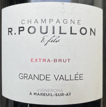 La cuvée de Champagne "Grande Vallée" de Fabrice Pouillon est un assemblage des terroirs de Mareuil, Mutigny, Epernay, Avenay et Festigny. L'encépagement est 65 % pinot noir, 20 % pinot meunier et 15 % chardonnay. Les raisins sur cette version sont issus des vendanges 2018 pour 40 %, 2019 pour 35 % le complément venant de vins de réserve élevés en foudres. L'originalité de la cuvée est aussi de faire appel aux sucres et levures des raisins pour la prise de mousse. Mise en bouteille en 2020 et dégorgement au 3e trimestre 2021 avec un dosage de 2 g/l. Robe d'un bel or jaune, dorée, et mousse très fine en décembre 2022. La bouche est gourmande, fruitée (petits fruits rouges), avec une bonne finesse pour une cuvée majoritairement issue de pinots. Ce "Grande Vallée" se goûte très bien. D'autres bouteilles toujours basées sur 2019 et 2018 mais dégorgées au 1er trimestre 2022 et toujours dosée à 2 g/l se sont avérées très gourmandes, riches et vineuses, intenses en février et mai 2023.