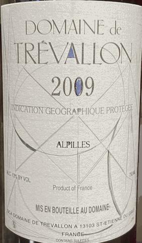 Robe or jaune clair en octobre 2025 pour ce Trévallon blanc millésime 2009. C'est la première fois que le grenache blanc entre dans son assemblage avec 5 %. Sinon la cuvée est toujours basée sur la marsanne avec 50 % avec l'apport de 24 % de roussanne, 11 % de chardonnay, 10 % de clairette. Vinification en barriques pour moitié neuves. Lez est très aromatique, floral. La bouche au départ est incroyable avec une explosion de saveurs et de parfums. Une sensation rarement rencontrée qui provoque une émotion certaine. C'est un vin complexe, jeune, doté d'une belle matière de bonne richesse (13°). C'est vraiment un très beau millésime de Trévallon blanc.