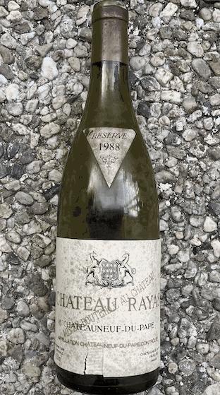 Ce millésime 1988 du rouge de Château Rayas date de l'époque Jacques Reynaud. Bouchon de 45 mm indiquant mise en bouteille au château. Robe d'un rubis sombre légèrement terne en janvier 2026 pour cette bouteille de bon niveau. Le nez est marqué par le pruneau. La bouche s'avère riche, avec une belle allonge mais aussi une acidité relativement marquée qui masque quelque peu l'intensité habituelle de ce grand vin de grenache noir. C'est bon, voire mieux, mais ce n'est sans doute pas la meilleure bouteille car ce millésime 1988 se goûtait très bien dès sa jeunesse.