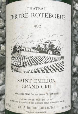 Robe rubis moyen aux bords tuilés en décembre 2025 pour ce Saint Emilion Château Tertre Roteboeuf millésime 1992. Les bouteilles sont numérotées. Le nez est intense. La bouche est agréable au départ avec une bonne richesse (13°) mais malheureusement l'acidité prend vite le pas sur la matière dans ce millésime difficile qu'est 1992 à Bordeaux. C'est dommage, le vin aurait dû être bu plus tôt sans doute car les vins du domaine ont toujours une matière étonnante découlant des choix de récolte à haute maturité des raisins à forte majorité merlot.