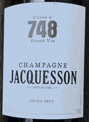 La version "748" de la maison Jacquesson est basée sur la vendange 2020 avec quelques vins de réserve. Les raisins proviennent des terroirs d'Aÿ, Dizy, Hautvillers, Champillon pour 55 % et d'Avize et Oiry pour 45 %. Production de 170.320 bouteilles, 8.850 magnums et 400 jéroboams. Belle robe or jaune avec une mousse très fine en jan vier 2026. Joli nez sur des notes florales et de prune. La bouche conjugue finesse, élégance, équilibre avec une jolie matière savoureuse pour cette base de 2020.