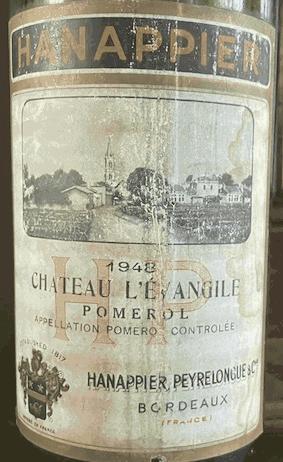 Robe rubis sombre aux bords tirant sur l'orange en février 2026 pour ce Pomerol Château l'Evangile millésime 1948, une mise en bouteille du négociant Hanappier. Niveau malheureusement très bas. Ceci dit le vin a encore malgré tout de beaux restes et la bouche offre une matière certes un peu stricte avec de l'acidité mais avec un certain charme et une bonne présence. Du moins pour ceux qui savent apprécier les vins anciens dans leur contexte. A n'en pas douter une bouteille de bon niveau devrait être très intéressante. Le millésime 1948, coincé entre les légendes 1947 et 1949 a engendré de très beaux vins à Bordeaux.