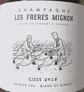 La cuvée de Champagne "Cuis" des Frères Mignon millésime 2018 est un Blanc de Blancs de chardonnay du terroir 1er cru de Cuis dans la Côte des blancs. Issue d'une sélection massale de 1974 plantée sur un sol crayeux en exposition sud. Cette version a été vendangée début septembre 2018, mise en bouteille fin juillet 2019 et dégorgée mi novembre 2023 avec un dosage d'1,6 g/l. A noter que la fermentation malolactique n'est ni réalisée ni bloquée et que le vin n'a subi ni collage, ni filtration et que le passage au froid est naturel comme autrefois. Production de 1.474 bouteilles et 113 magnums. Robe d'un bel or jaune avec une mousse très fine et très active en novembre 2024. C'est un Champagne élégant et fin, avec une texture douce et une jolie matière dans ce millésime. Plus gourmand en février 2026 sur une bouteille dégorgée en avril 2024 et dosée à 1,6 g/l. Le vin n'est pas trop marqué par le millésime 2018. De jolis amers en finale soulignent son élégance.