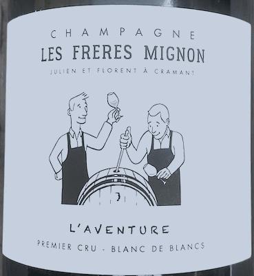 Robe or jaune clair et mousse très fine en mai 2025 pour cette version basée sur la vendange 2021 de la cuvée de Champagne "L'Aventure" des Frères Mignon. La mise en bouteille est de juillet 2022 et le dégorgement de novembre 2024 avec un dosage de 3,2 g/l. Pour mémoire c'est un pur chardonnay issu de sélection massale des terroirs d'Avize, Cramant et Cuis. La robe est or jaune clair avec une mousse très fine et active. Nez fruité, pêche blanche. La bouche s'avère riche et gourmande, plus fruitée et riche que minérale. Mais le dosage est supérieur à ce qu'il était avant et cela nécessite peut-être d'attendre plus longtemps. Une autre bouteille s'est avérée plus minérale et tranchante en août 2025. Mêmes notes sur un dégorgement de mars 2025 en novembre 2025. Jolies notes d'agrumes et beaucoup de gourmandise.