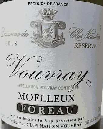 Robe or jaune, dorée, claire, en novembre 2025 pour ce Vouvray moelleux "Réserve" millésime 2018 du domaine du Clos Naudin. Le nez de ce chenin fermenté en fûts évolue sur le coing, le floral, dans un registre mûr. En bouche le vin offre une belle liqueur compte tenu de la richesse en alcool modérée (11°5) qui annonce une belle dose de sucres résiduels. C'est un vin corsé, avec du gras, encore d'un bloc à ce stade. Il va s'affiner avec le temps et gagnera en équilibre.