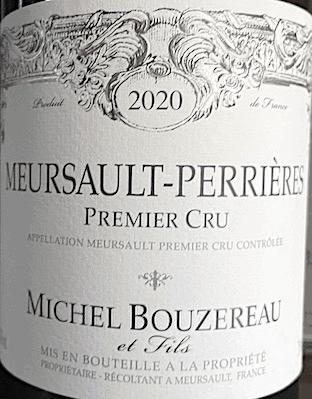 Ce Meursault 1er cru "Perrières" du domaine Michel Bouzereau et Fils provient de vignes de chardonnay plantées en 1939, 1956 et 2005. Il est fermenté en fûts en levures indigènes puis élevé en fûts, dont environ 30 % sont neufs, pour une période allant de 16 à 18 mois selon les caractéristiques des millésimes. Bouchon indiquant le domaine et le millésime uniquement. Robe d'un bel or jaune en mars 2026 pour ce millésime 2020. Le nez est floral, minéral. La bouche se révèle relativement riche (13°) et intense avec une bonne longueur et une pointe de gras. De fins amers soulignent sa palette aromatique. Il apparait déjà relativement évolué et ouvert et questionne sur sa longévité.